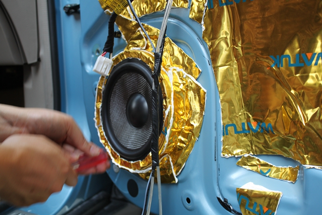 2011丰田汉兰达影音改装歌乐NX403CII导航 Goldbor前后门喇叭改装过程效果图