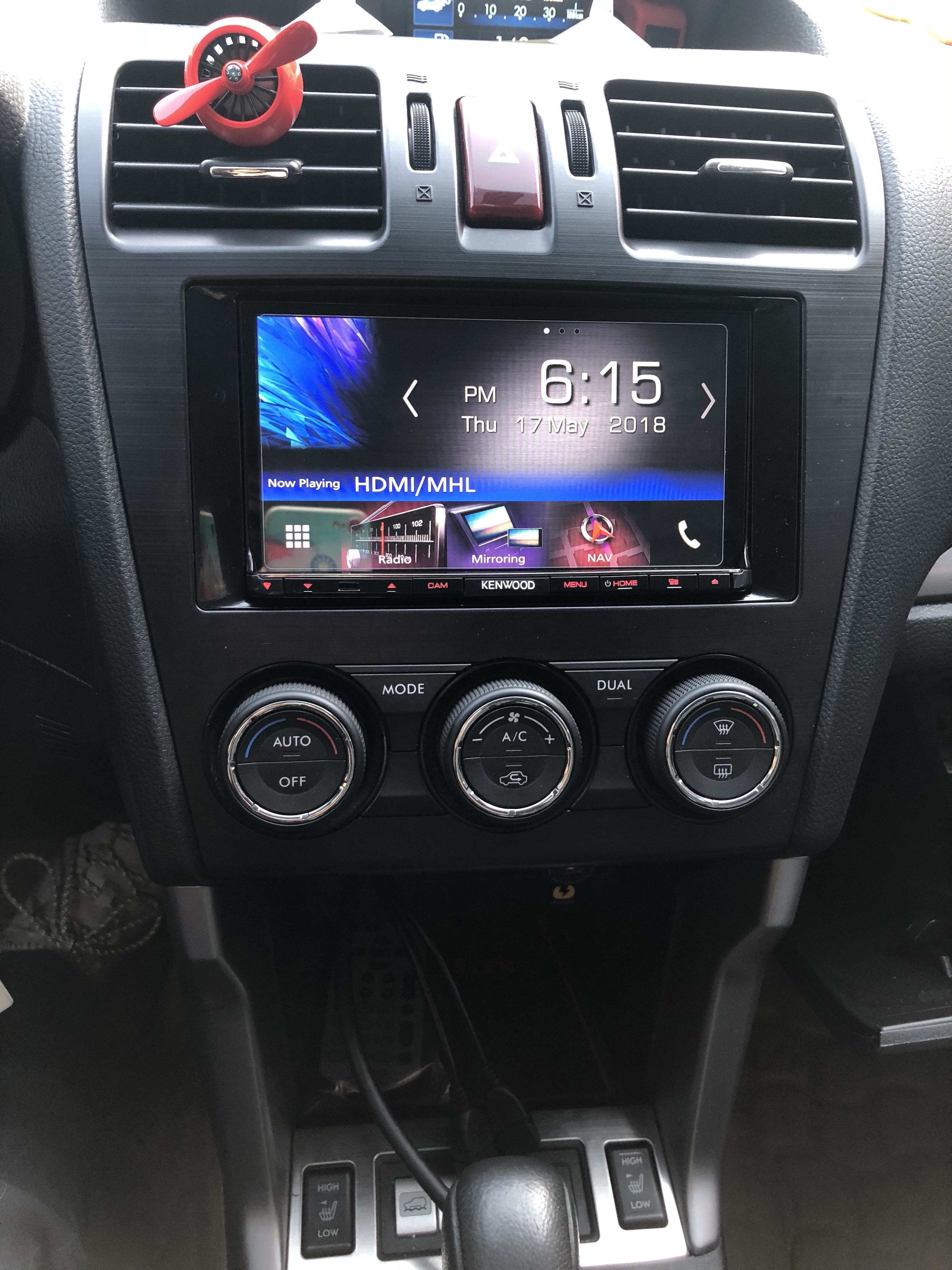 特地试用了一星期才来评论,建伍的机子真是不错。 界面设计,操作流畅度都很好。 加装了导航模块,是凯立德导航,为了后续升级地图卡,模块只能丢手套箱里。 apple carplay 链接很好用,线材我是从中控台下打孔穿出来。连接麦克风,完美呼唤siri。可以用QQ音乐,网易音乐,虾米音乐,地图,拨打电话,这几个简单app。 方向盘键盘可以智能学习按钮设置。 森林人配上老版的边框和面板,完美安装。
